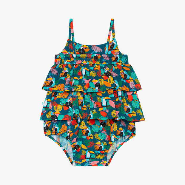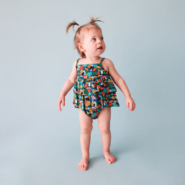Description Spaghetti strap bubble rompers are the perfect lightweight summer outfit! Päpook® viscose from bamboo is buttery soft, breathable, and oh so cute! Dainty bow sleeve detail, ruched bodice, and snap closure for an easy diaper change.