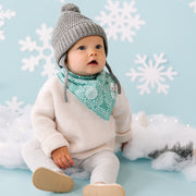 These stylish drool bibs are made of 100% absorbent cotton on the front and 100% polyester fleece on the back. The front of the baby bib is a stylish knit fabric and the back is a super soft fleece that keeps your baby completely dry even with the drooliest of babies. Great for teething babies!