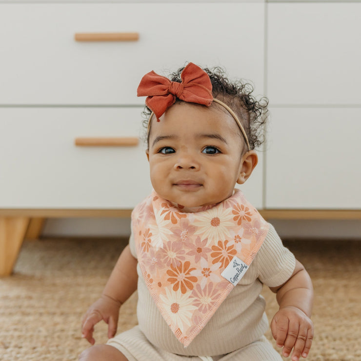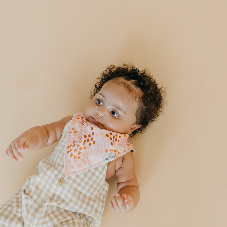 Each baby bandana bib comes with 2 nickel-free snaps that allow each bib to be adjustable in size to fit newborns and toddlers, with ages ranging from 3-26 months. The snaps are secure, making it difficult for infants and toddlers to unfasten but are easy for parents to snap on and off.