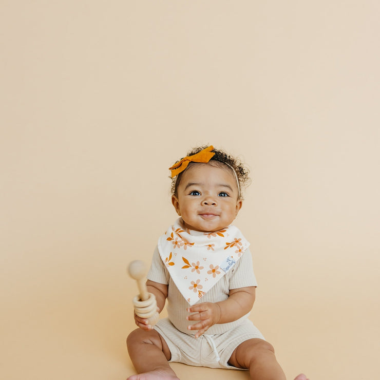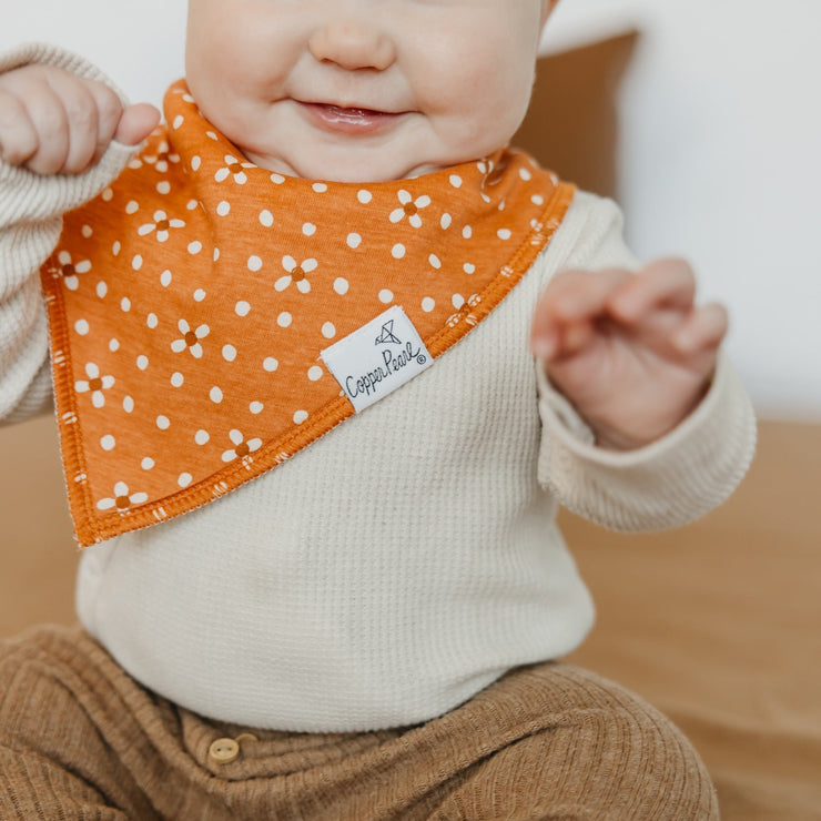 These stylish drool bibs are made of 100% absorbent cotton on the front and 100% polyester fleece on the back. The front of the baby bib is a stylish knit fabric and the back is a super soft fleece that keeps your baby completely dry even with the drooliest of babies. Great for teething babies!