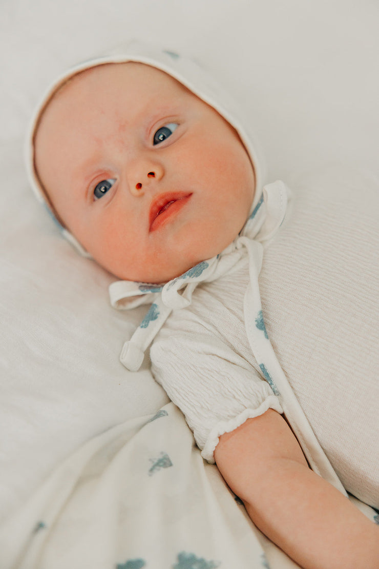 Effortless yet darling, our super-soft baby bonnet gives a nod to days gone by while still managing to be completely trend forward. With a baby-friendly design that’s comfy to wear, it’s available in multiple Copper Pearl prints. Tie it on and get ready for smiles!