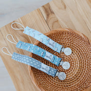 Offering the ultimate blend of fashion and function, our unique Binky Clip features a premium knit strap lined with absorbent fleece to help soak up drool. Simply attach baby's pacifier or teether to one end, then fasten the clip to clothing, blankets or baby gear. Oh, and by the way our set includes three Binky Clips to keep with you wherever you go - no more floor drops or pacifier pick-ups!