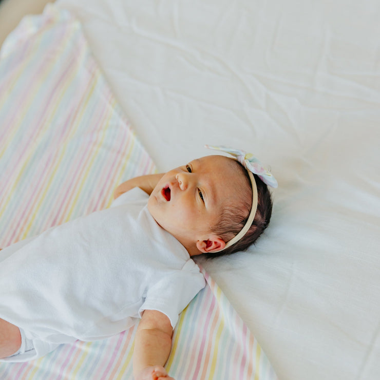 At Copper Pearl, we pride ourselves on making high-quality products that always look great on babies, moms, or in your nursery. Our nylon bows are available in a wide range of our on-trend prints that are sure to elevate any baby's style!