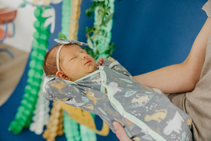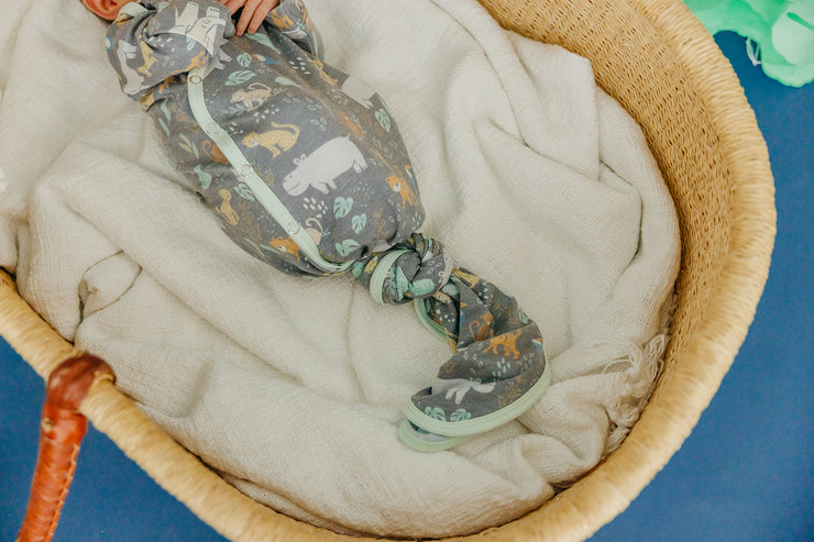 Made with the same premium knit fabric as our beloved swaddles, this soft and stretchy gown ties at the bottom for easy diaper changes—and has room to grow.
