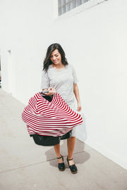 Copper Pearl multi-use 5-in-1 cover can be used as a car seat cover, a nursing cover, a shopping cart cover, a high chair cover, and an infinity scarf. This versatile cover is made of a high quality, stretchy, and durable fabric. The unisex, modern, and trendy fabric offers your baby protection from the elements such as wind, rain, snow, and bright light. It is quick and easy to put on and take off but snug enough that your little one can't kick it off while nursing. The cover is warm enough for the cold winter months and lightweight enough for the hot summer months. As a nursing cover, it provides full and adequate coverage for worry-free nursing. You no longer have to be nervous about nursing in public or wherever you are. The stretchy fabric also allows you to easily access to your newborn while breastfeeding, to ensure a good latch or for any other adjustments. While you are shopping, this cover protects your little one from germ infested shopping carts, providing a great alternative to using antibacterial wipes every time you go to the store. One size fits almost all models of car seats, shopping carts, and nursing mothers. Compact when folded, the cover conveniently takes up little storage space in your diaper bag or purse. This nursing cover / car seat cover makes a perfect Christmas present or baby shower gift for new moms.