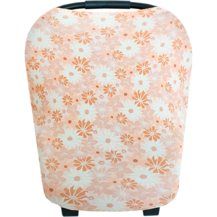 Stretchy fabric fits most all car seats, shopping carts, high chairs and nursing mothers. It can also be a trendy infinity scarf! Our multi color floral fabric is trendy and perfect for baby girls