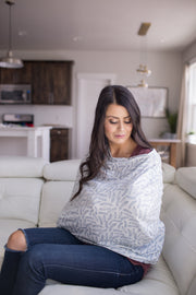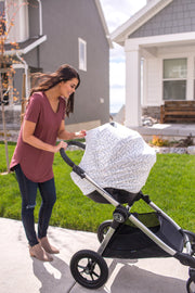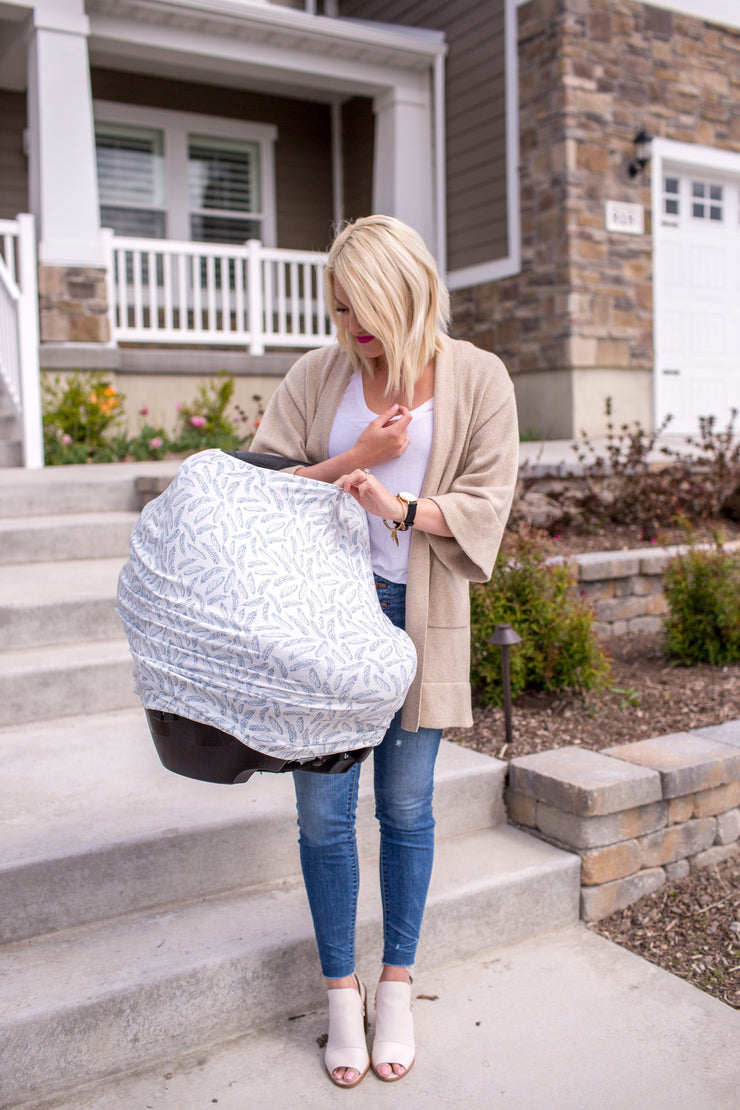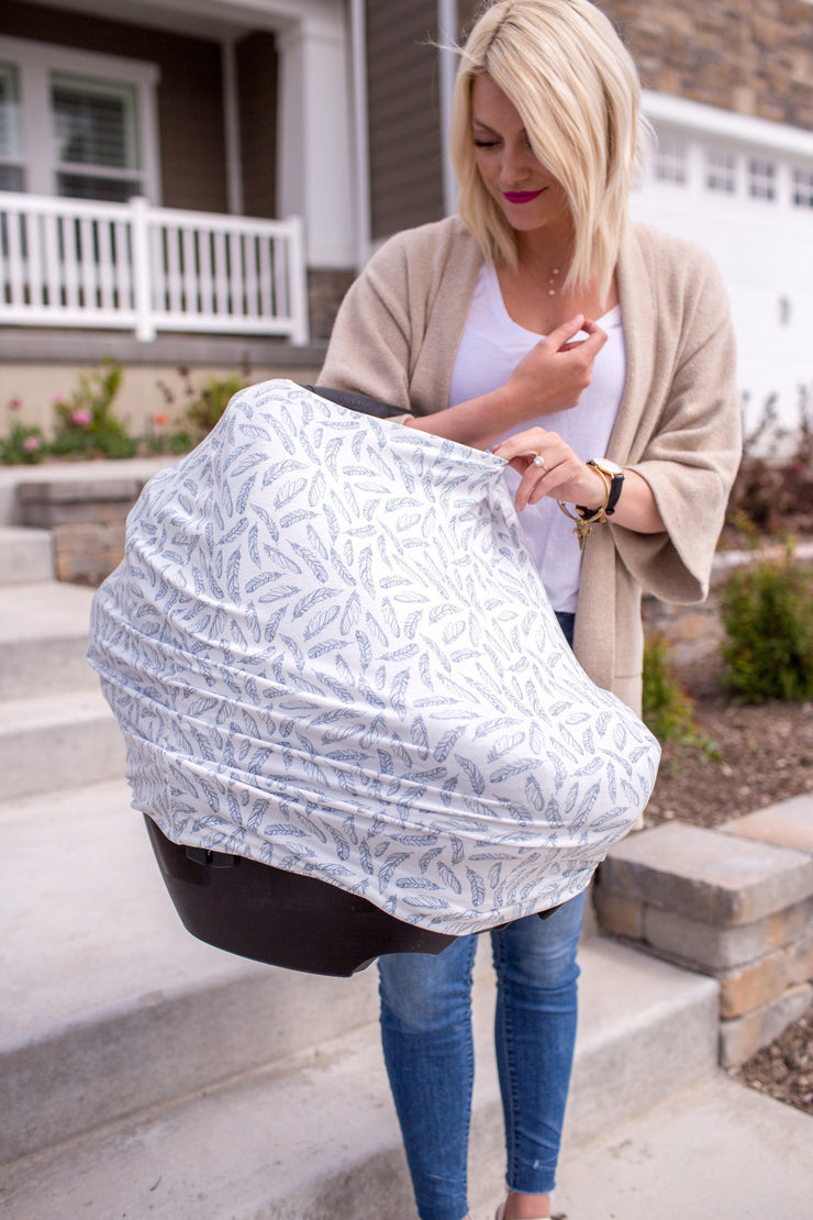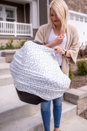 Copper Pearl multi-use 5-in-1 cover can be used as a car seat cover, a nursing cover, a shopping cart cover, a high chair cover, and an infinity scarf. This versatile cover is made of a high quality, stretchy, and durable fabric. The unisex, modern, and trendy fabric offers your baby protection from the elements such as wind, rain, snow, and bright light. It is quick and easy to put on and take off but snug enough that your little one can't kick it off while nursing. The cover is warm enough for the cold winter months and lightweight enough for the hot summer months. As a nursing cover, it provides full and adequate coverage for worry-free nursing. You no longer have to be nervous about nursing in public or wherever you are. The stretchy fabric also allows you to easily access to your newborn while breastfeeding, to ensure a good latch or for any other adjustments. While you are shopping, this cover protects your little one from germ infested shopping carts, providing a great alternative to using antibacterial wipes every time you go to the store. One size fits almost all models of car seats, shopping carts, and nursing mothers. Compact when folded, the cover conveniently takes up little storage space in your diaper bag or purse. This nursing cover / car seat cover makes a perfect Christmas present or baby shower gift for new moms.