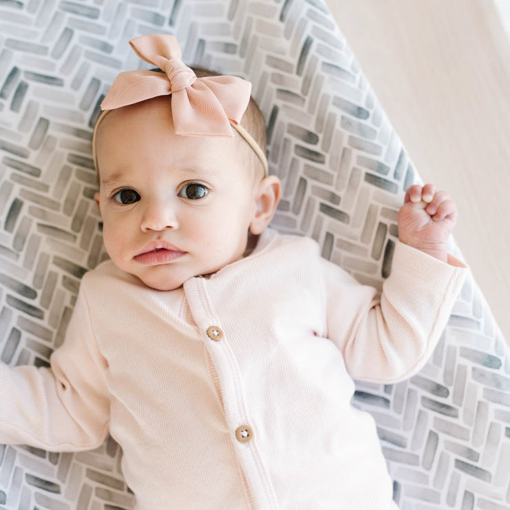 At Copper Pearl we pride ourselves on making high quality products that always look great on babies, moms, or in your nursery. Our changing pad cover designs are simple, modern, and complement any baby’s room. Our knit fabric also matches our other products for perfect nursery coordination!
