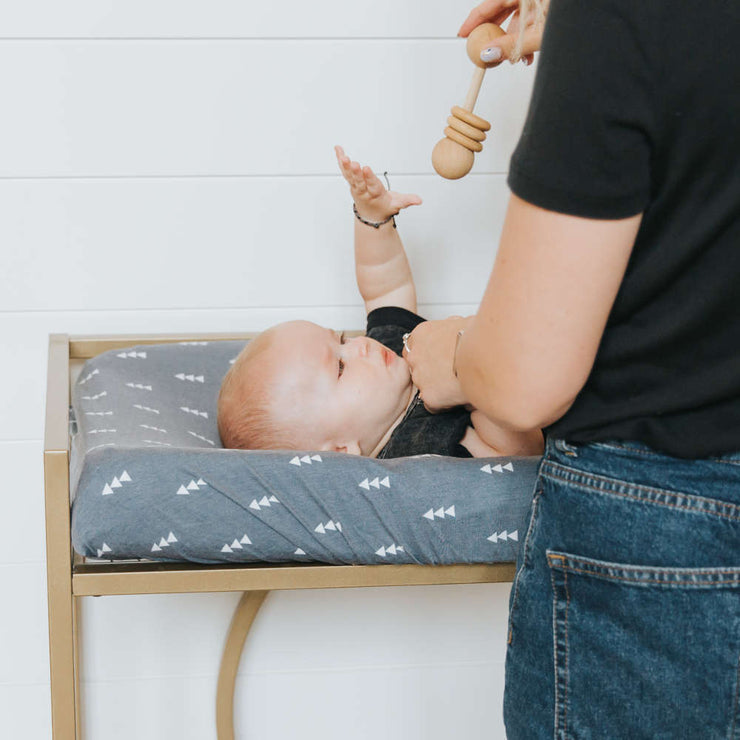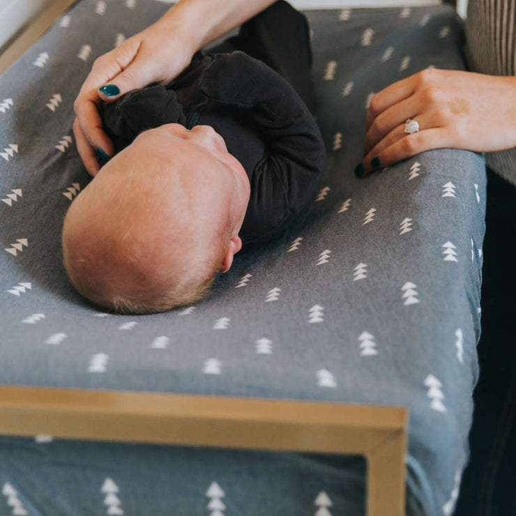 At Copper Pearl we pride ourselves on making high quality products that always look great on babies, moms, or in your nursery. Our changing pad cover designs are simple, modern, and complement any baby’s room. Our knit fabric also matches our other products for perfect nursery coordination!