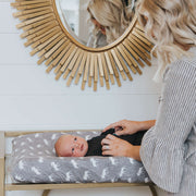 At Copper Pearl we pride ourselves on making high quality products that always look great on babies, moms, or in your nursery. Our changing pad cover designs are simple, modern, and complement any baby’s room. Our knit fabric also matches our other products for perfect nursery coordination!