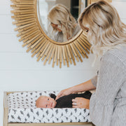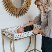 At Copper Pearl we pride ourselves on making high quality products that always look great on babies, moms, or in your nursery. Our changing pad cover designs are simple, modern, and complement any baby’s room. Our knit fabric also matches our other products for perfect nursery coordination!