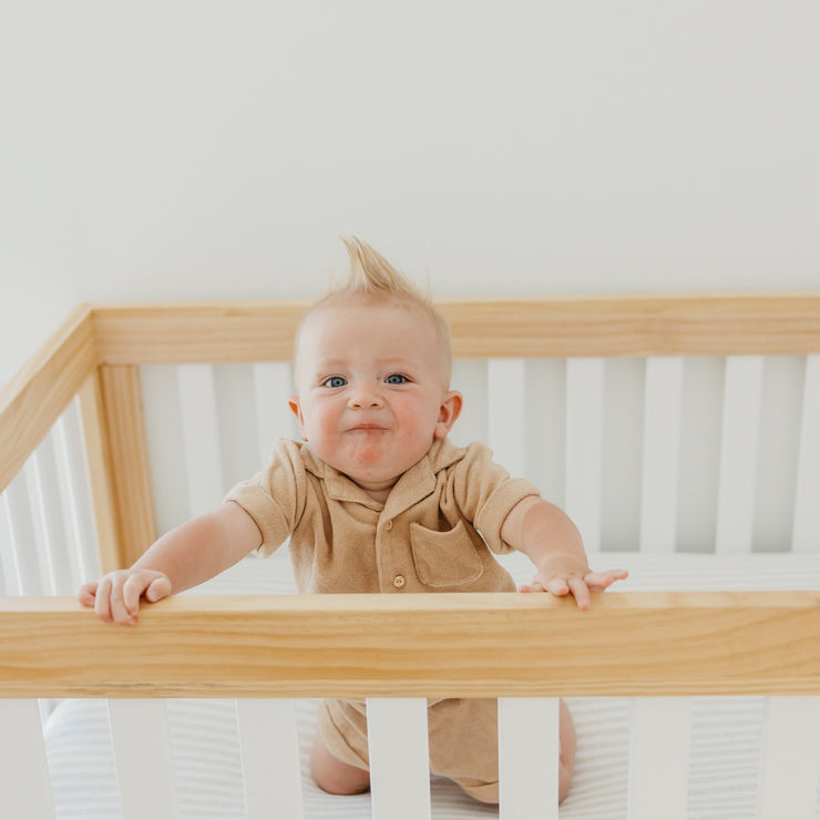 At Copper Pearl we pride ourselves on making only high quality products that always look great on babies, moms, or in your nursery. Our crib sheet designs are simple, modern, and complement any theme in your baby’s room. Our knit fabric also matches our other products for perfect nursery coordination!