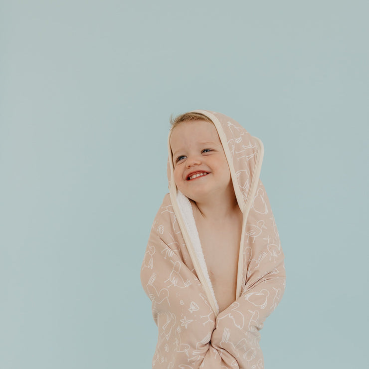 Each of our towels is crafted with a cozy hood and pint-sized pockets, the perfect way to keep little heads and hands warm and snuggly at tub time.