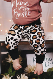 Baby style brought together in a pair of jogger pants. You just can't go wrong with these pants, they are light weight and stretch, so baby is able to move and have fun all day long. These pants are simply made out out a double brushed polyester knit, serged together to keep seams steady.
