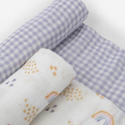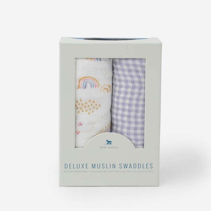 Our softest swaddles, in two hand-painted prints! Silky soft to the touch, our deluxe swaddles are lightweight and breathable while being gentle on baby's skin — ideal for swaddling, nursing, cuddling and more.