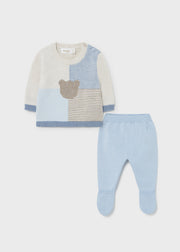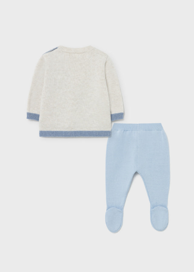 This two-piece tricot set for baby boy includes a jumper with matching leggings.