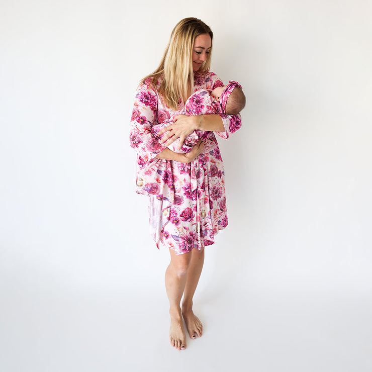 Our delivery/nursing maternity robes are made to make sure your visits during and after the hospital are comfortable and stylish. Our mommy robes are bump-and-beyond, transitional through all the stages of motherhood. Stylish and feminine design is lightweight and breathable.